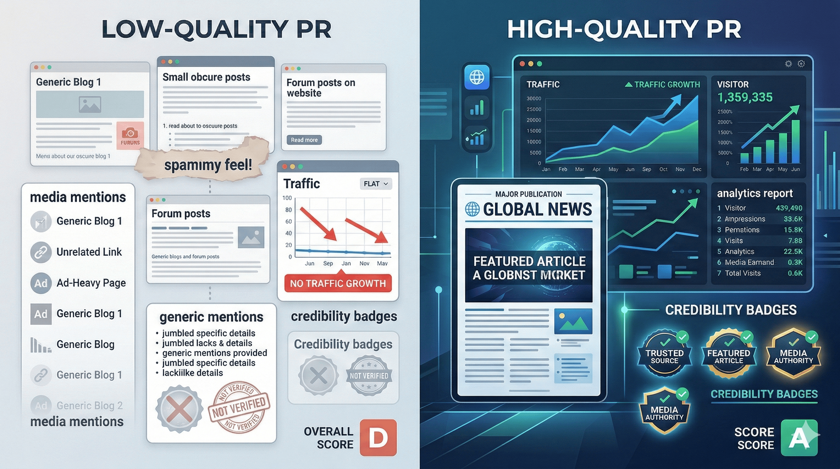 1. Named outlets, not volume counts "Distributed to 500 sites" is a red flag. Ask for a list of actual outlets. If they can't name them, the answer is scraper networks.